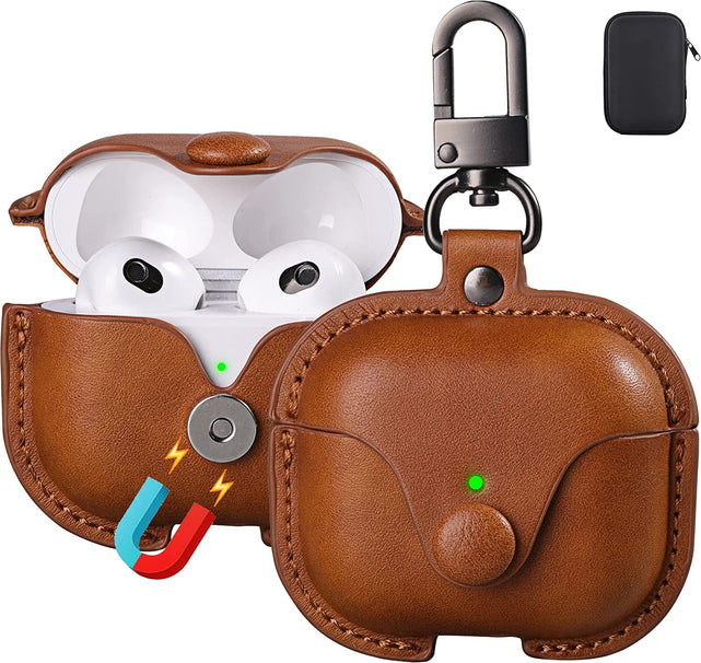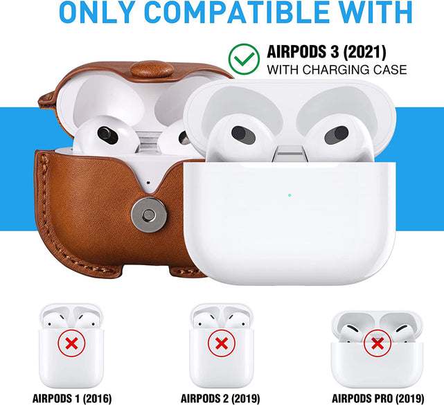 - 【PU Leather Case With Magnetic Clasp】High quality PU leather airpods 3 cover protect your AirPods 3 charging case away from scratches. Magnetic metal clasp, safe and sturdy to use, easy to open and close. Protect AirPods 3 charging case anywhere and anytime