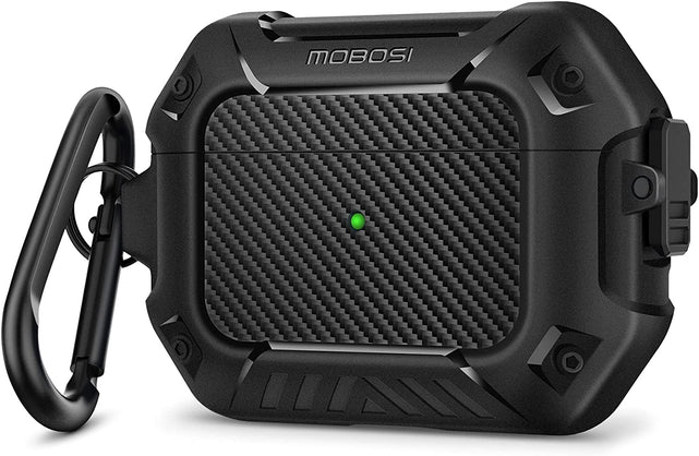 Compatible AirPods Pro Case, Secure Lock Clip Full Body Shockproof - Black