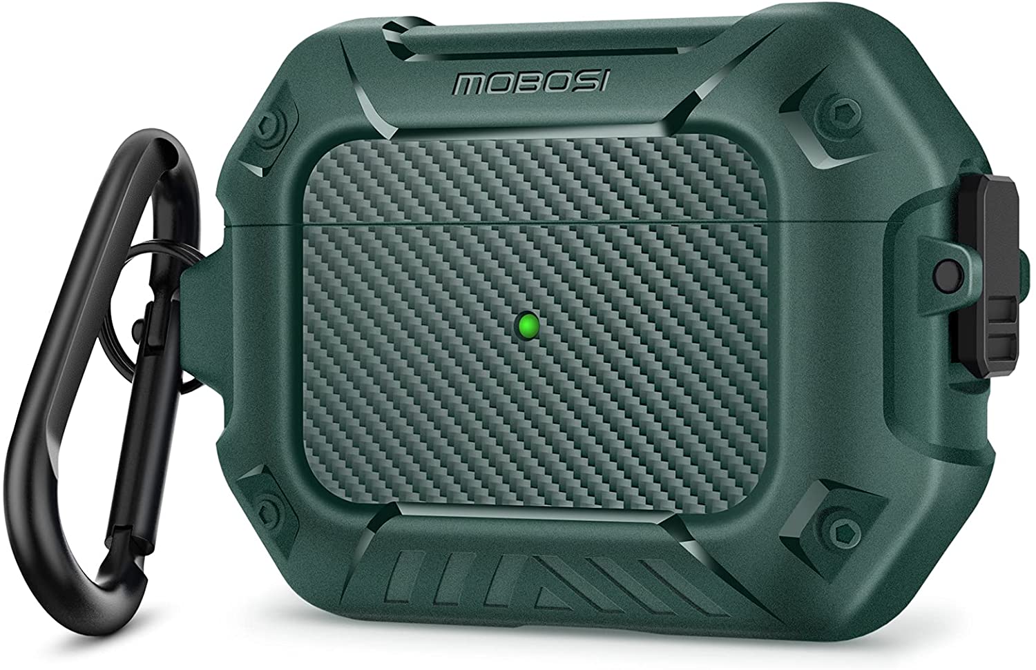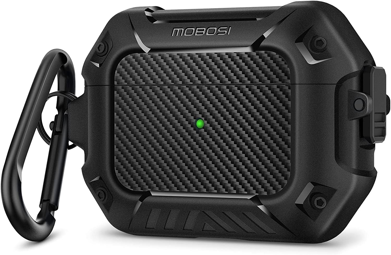 - [Secure Lock Clip] The security lock made of aluminum alloy material enhances protection which keeps the AirPods charging case closed well and secure the lid from falls at all times. The portable metal carabiner allows you convenient to carry your AirPods Pro anywhere.