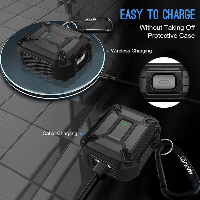 - Maxjoy AIRPODS CASE COVER - Specifically designed for your AirPods 1 & 2 charging case. Maxjoy shockproof Airpods protective case cover perfectly compatible with Apple AirPods charging case, protect your headphone against scratches and dents