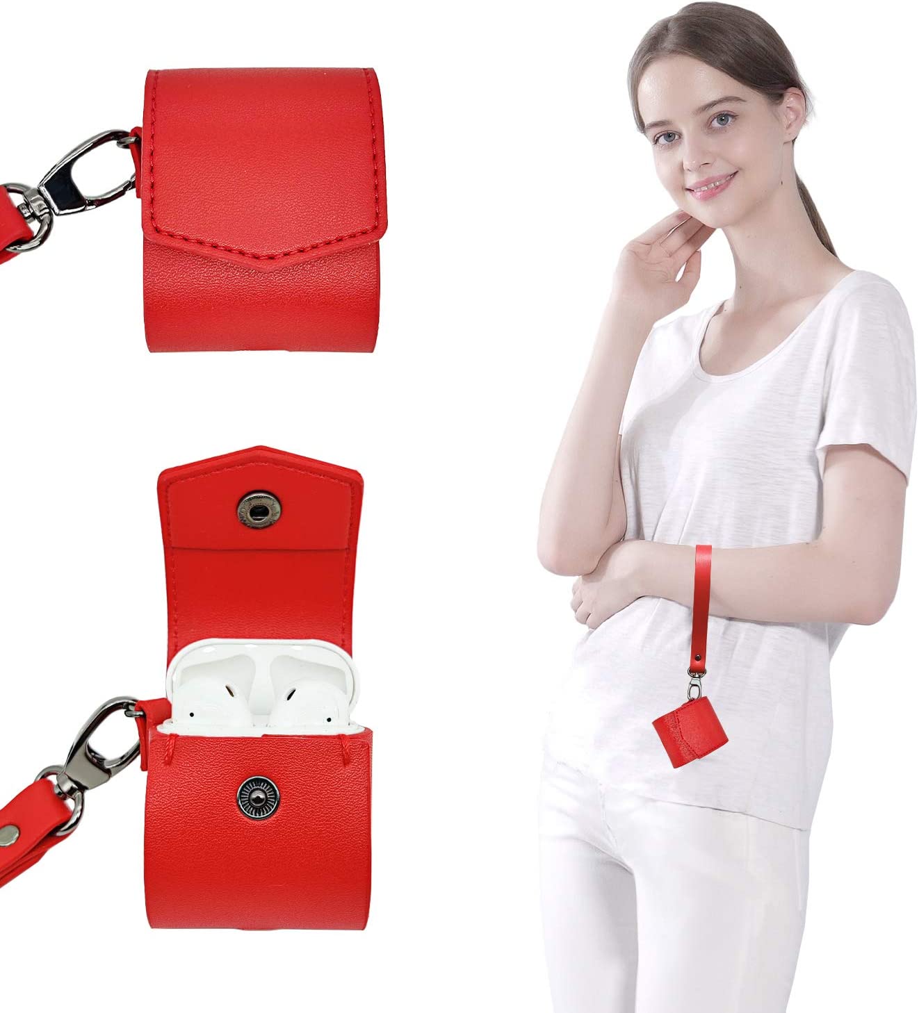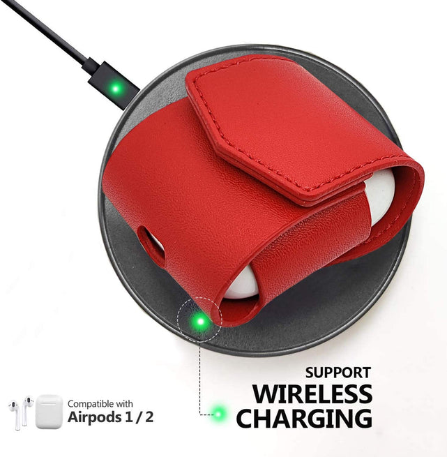 MODOS LOGICOS Charging Case Cover Apple Airpods , PU Leather Case - Red