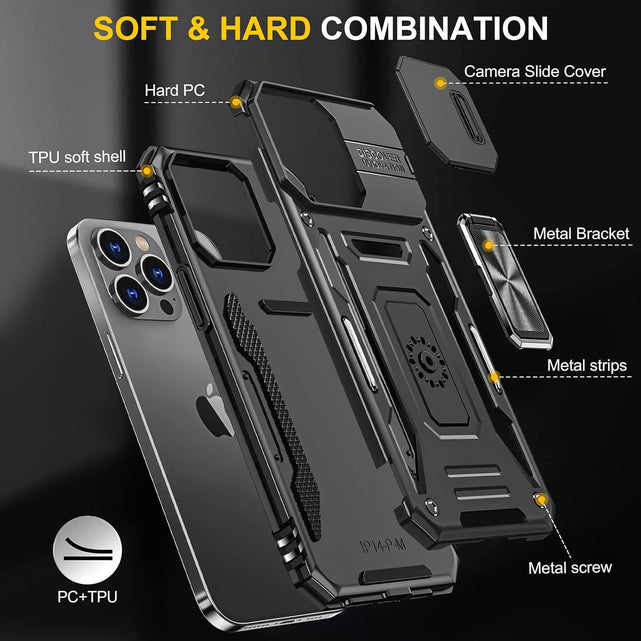 💎【Slide Camera Protection】 Movable sliding camera protection cover offers more protection for the camera and privacy of your IP 15 Pro Max than any ordinary protective case