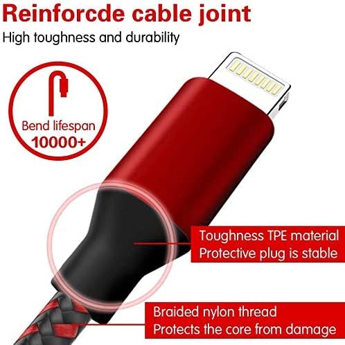 - 【Military grade material】: Strong military fibre, the most flexible, powerful and durable material, makes tensile force increased by 200%. Special Strain Relief design, can bear 10000+ bending test. Premium nylon braided Lightning cable adds additional durability and tangle free