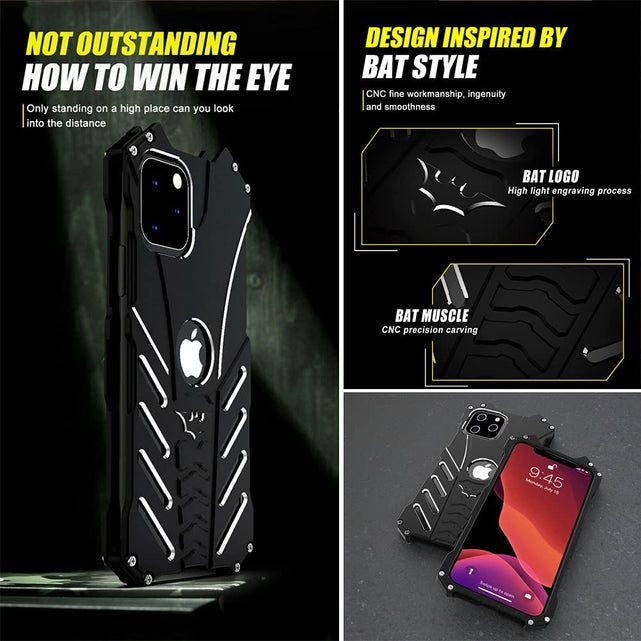 iPhone 11 Tough Bumper Shockproof Aluminum Alloy Frame Bat Style Metal Case