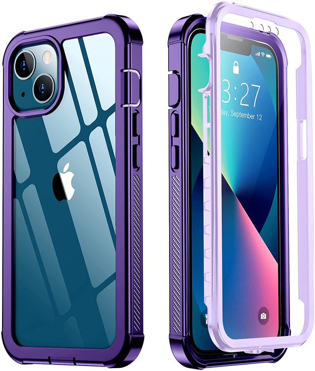 - 【Military Drop Protection】 The IPhone 13 protective case with double-layer design of the built-in screen protector and sturdy transparent back cover provides 360° full-body protection for your new iphone. Unique shock-absorption design to disperse severe shocks, prevent unexpected impacts and scratches.