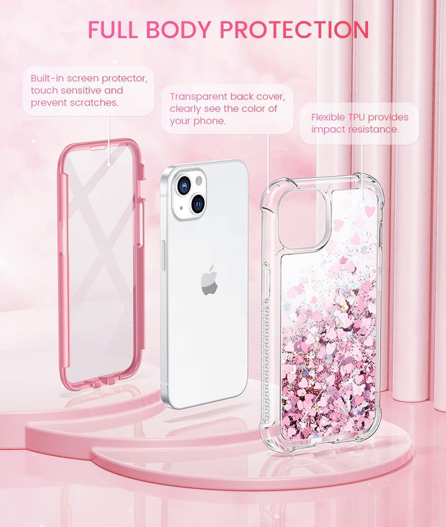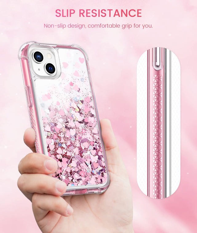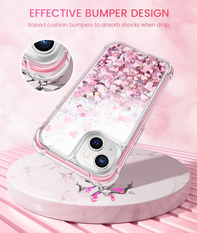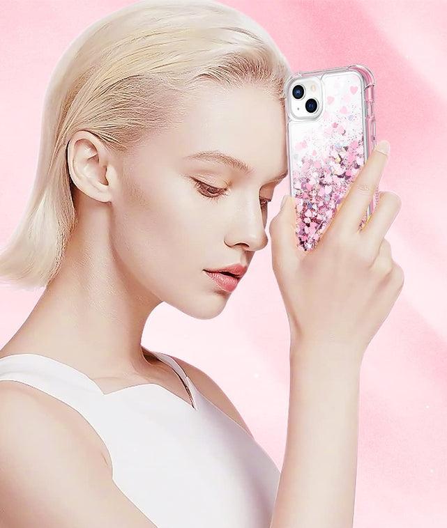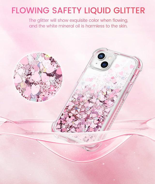 - ❤[Sparkle Waterfall iPhone 13 Case] This iPhone 13 glitter liquid phone case makes the bling love-shaped sequins move freely, just like the stars floating in the water, will not only beautiful but also bring much fun to you and your friends or family.
