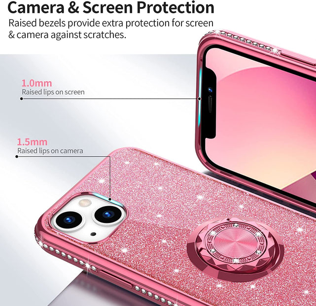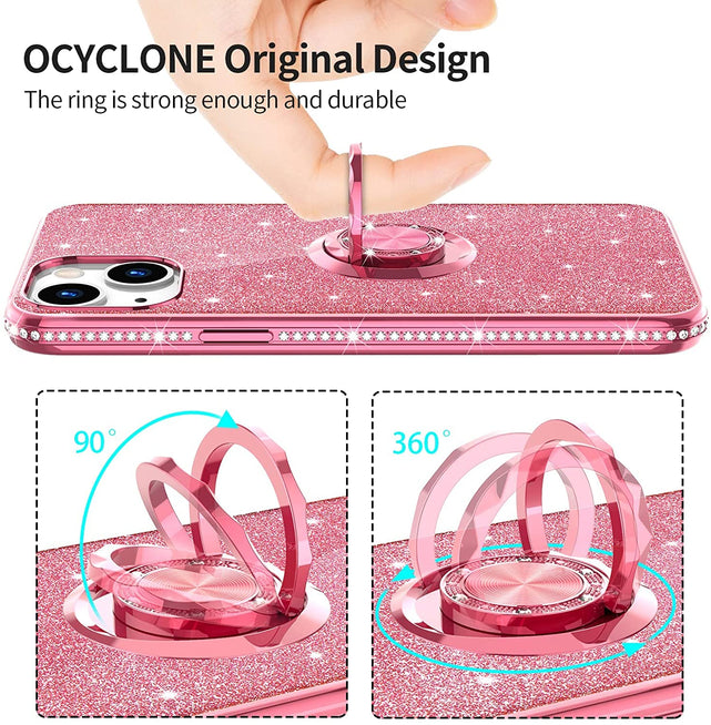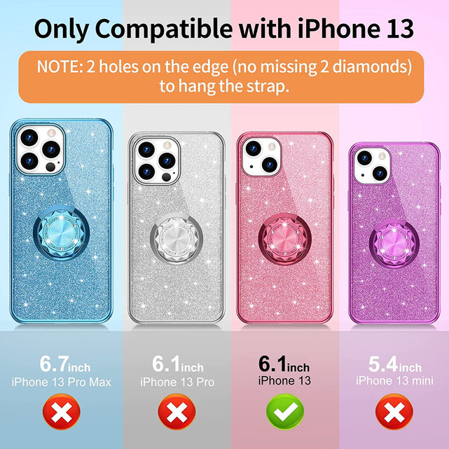 - [Glitter Case]: OCYCLONE glitter phone case is only compatible with iPhone 13 5G 6.1 inch [2 cameras] released 2021. Package includes: 1*Phone case with ring stand + 1*Lanyard. Note: Not compatible for iPhone 13 pro 6.1 inch [3 cameras]. Gifts iPhone 13 case for women.