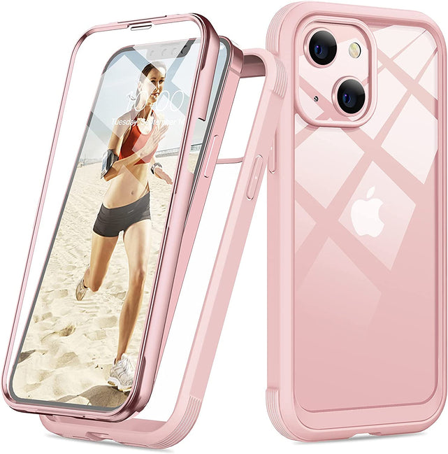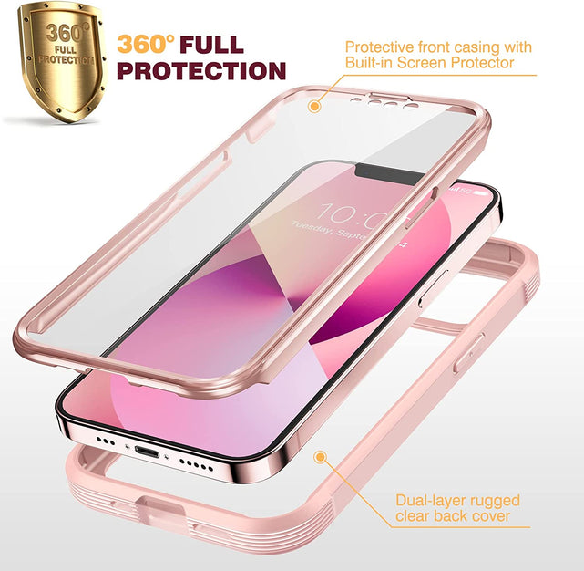 iPhone 13 Mini Case, Full Body Rugged Screen Protector Case (Crystal Pink)