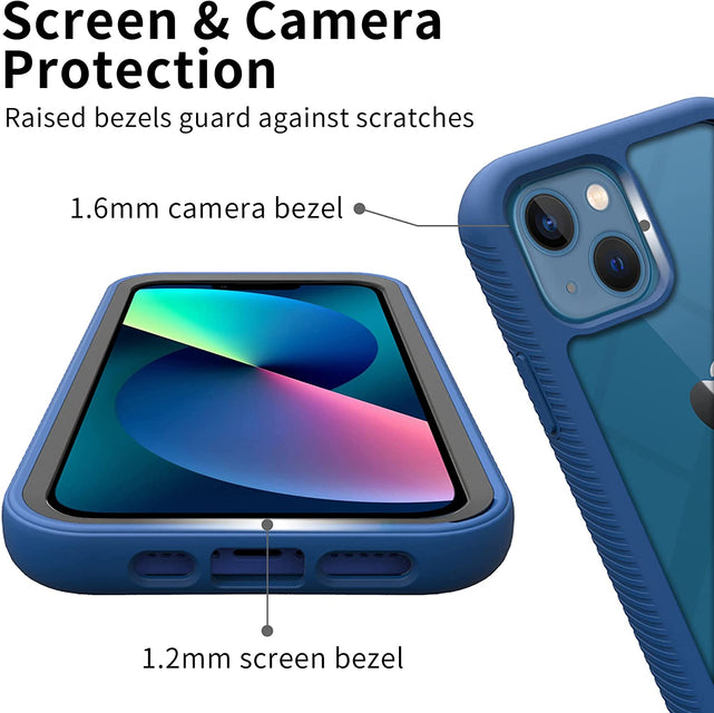 iPhone 13 Mini Case Screen Protector Full-Body Rugged Clear Case - Blue