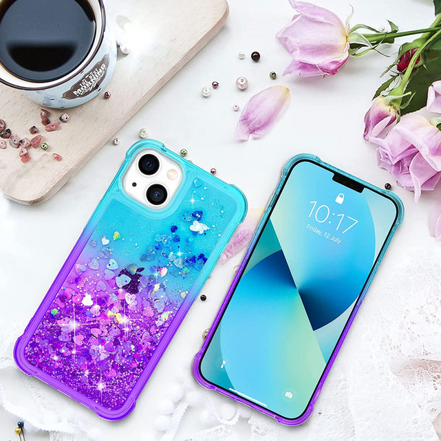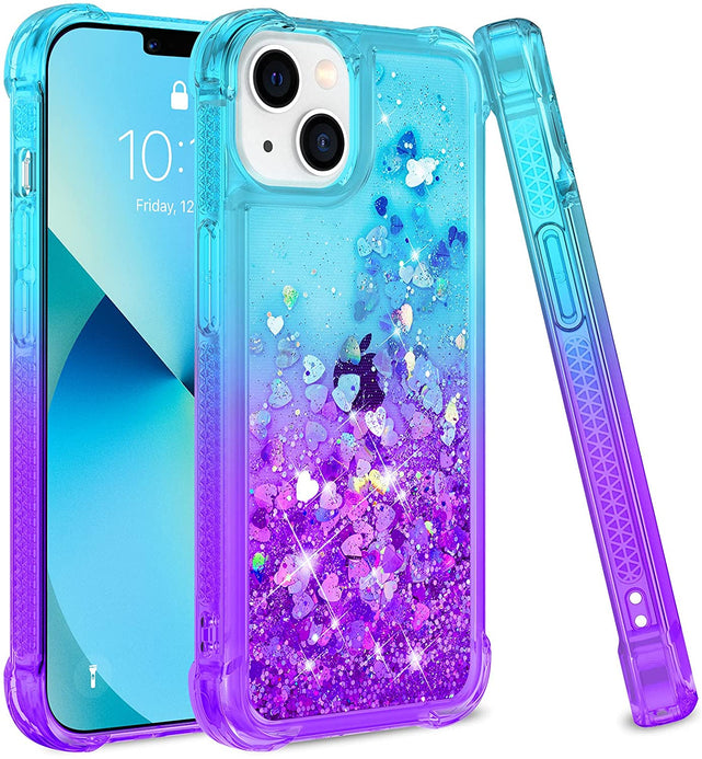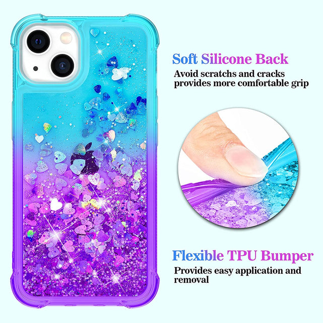 - [Beauty&Luxury Bling Glitter Liquid Case] This glitter liquid design not only make your iPhone 13 Mini sparkle case beautiful but also more interesting to play, the bling love heart sequins could flow freely inside and change its color with floating up and down, give your loved one a big smile on her face.