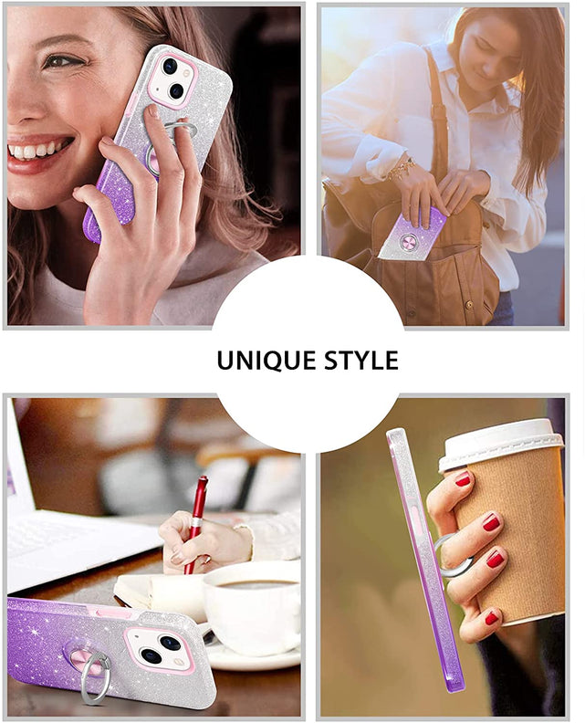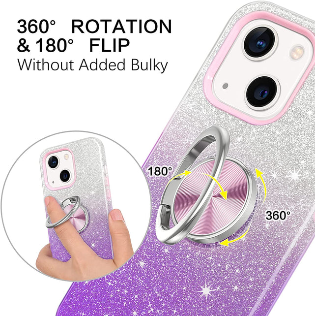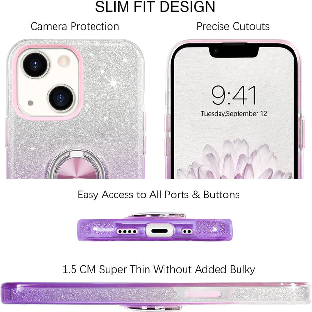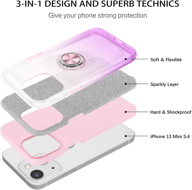 - ★Compatible Model: This awesome sparkle phone case is compatible with iPhone 13 Mini (5.4 inch,2021 released) ONLY, NOT fit for any other phone models. 【Built-in 360°rotatable convenient ring holder, flexible kickstand and magnetic car mount supported.】