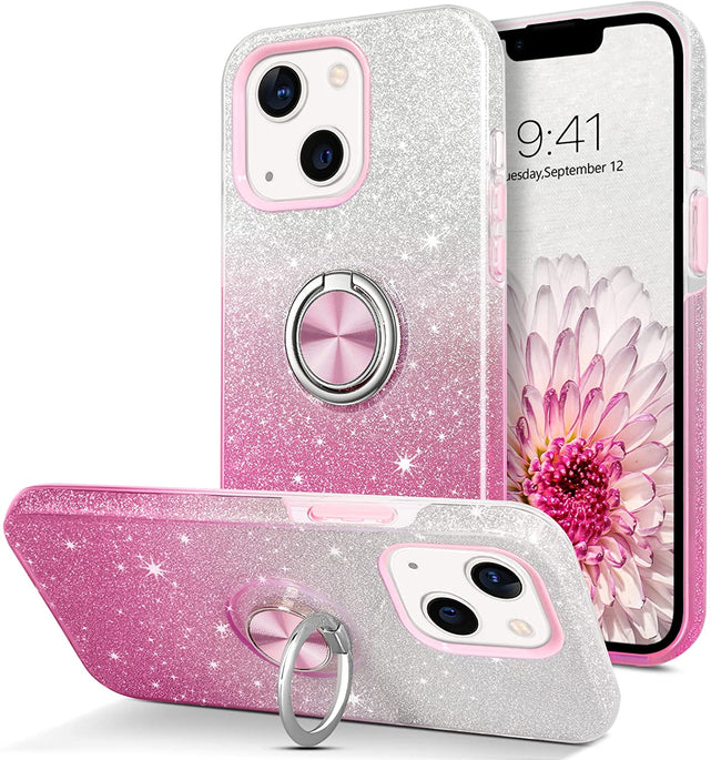 iPhone 13 Mini Glitter Ring Holder Kickstand Case