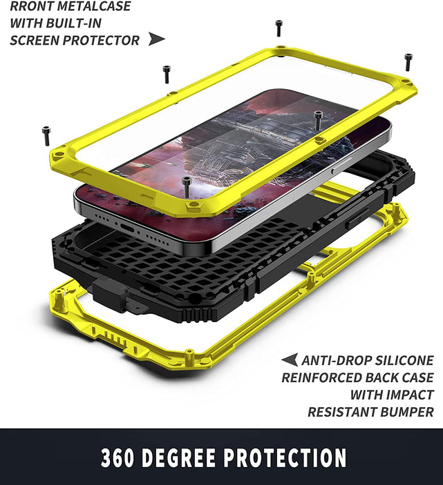 - Heavy Duty Full body Protection -- The compatible with iphone 13 mini waterproof metal case with screen protector was consistant by metal frame,metal material is shockproof and drop-proof. 360 degree protect your phone - iphone 13 mini.