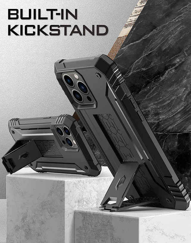 - iPhone 13 Pro Case with Kickstand - Built-in Pull out kickstand for hands-free viewing in portrait or landscape mode.