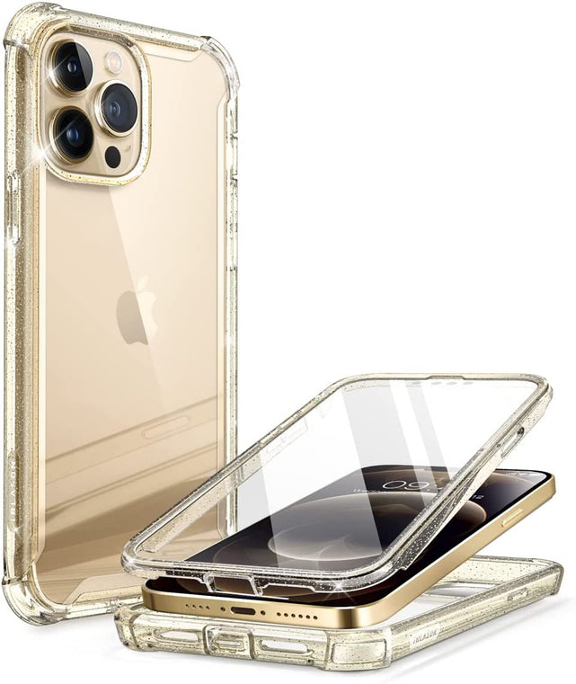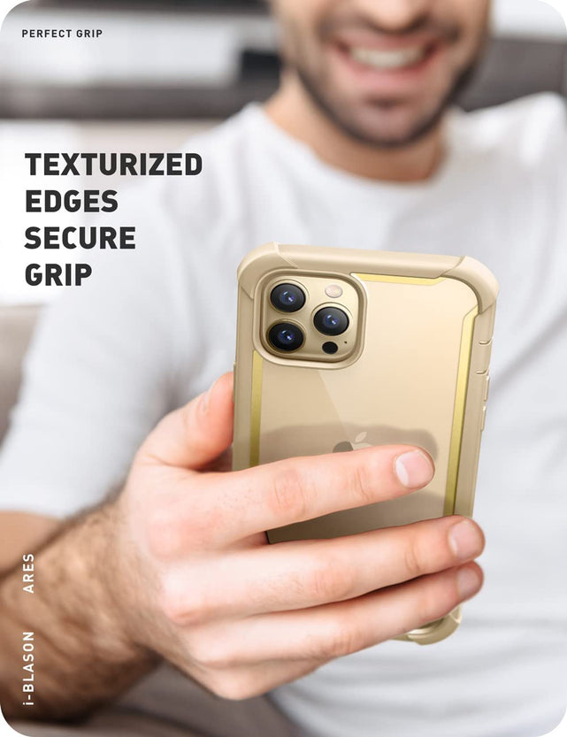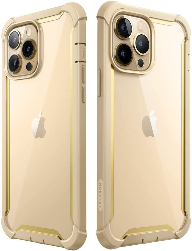 iPhone 13 Pro Max 6.7 inch Dual Layer Rugged Bumper Case Screen Protector Beige/Gold