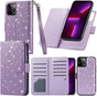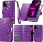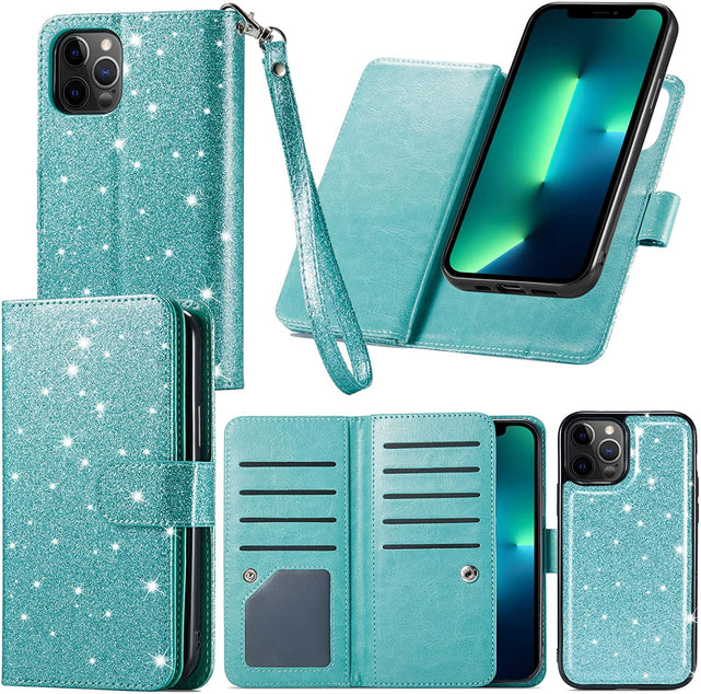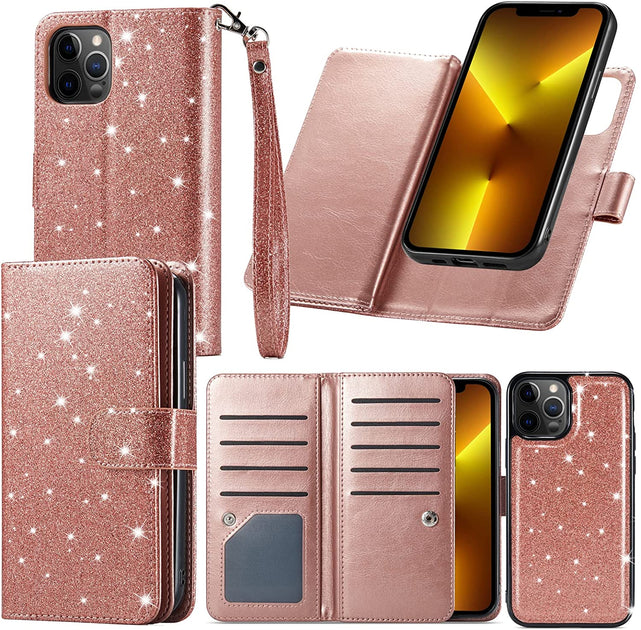 - [Premium Quality and Fine Workmanship] high quality magnetic snap button make sure your cards holder stay closed tightly. Perfect privacy protection and very convinient for your daily use; Not fade & scratches proof glitter pu leather provides a long service life; with the precise cutout for easy access to all functions without removing the case; You will receive many compliments on this fashion and elegant iPhone 13 Pro Max wallet case