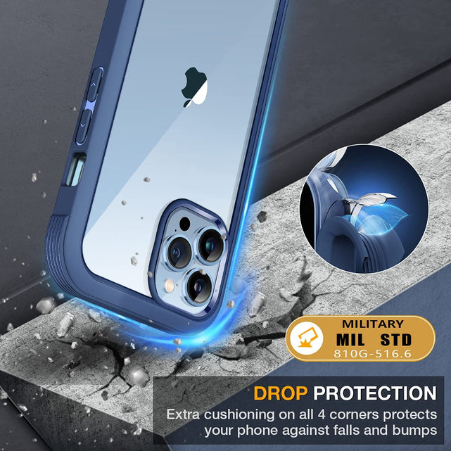 - [360° Full-Body Rugged Protection] Full-body protective case for iPhone 13 pro max tested to survive as many drops as a military standard. Flexible TPU materials and Tri-layer structures absorb and deflect impact while block dirt, dust. Raised lips around the camera and the screen for added protection against untoward scratches.