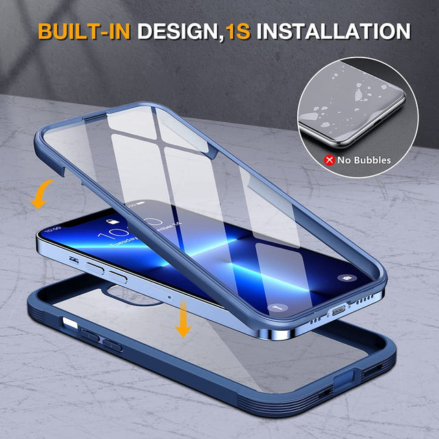 - [Easy to Get Phone Protected] Integarated design for friendly use. The front and back case design make the installation very simple, no worry about installing crooked and any air bubbles. Press your phone into the front cover then the back case. Note: Remember all assembly and disassembly all start from the lower right corner.