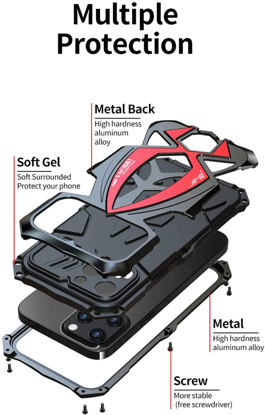 - 🦇 Military Grade Protector: This strong case is made of metal and rubber, and fixed with screws. And give the most protect your phone from shock and scratching.