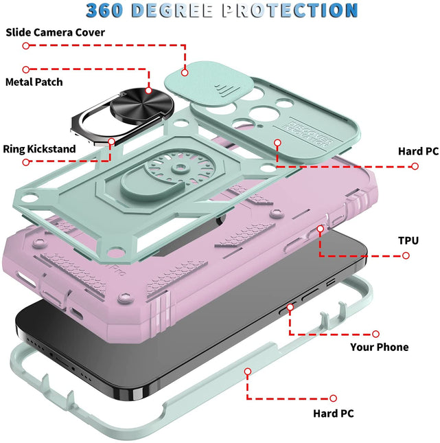 • 【Camera and screen】 The camera of the iPhone13 Pro Max case adopts exquisite sliding cover design, which perfectly protects the hidden camera from damage and wear. At the same time, the periphery of the screen of the case to be protruding higher than the screen, which is perfect to prevent any fall, damage, and scratches.