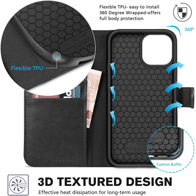 • ✪✪✪ Classic & Convenient ✪✪✪ : Premium synthetic leather cover guards your new iPhone 13 Pro Max against scratches and drops. We have designed cases that not only have that classic leather feeling but also have a retro outlook and practical design. TUCCH leather case is a graceful, luxurious and fashionable business-style leather case for your iPhone 13 Pro Max.