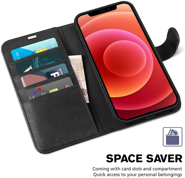 • ✪✪✪ Card Slots & Precise Cut Outs ✪✪✪ : This iPhone 13 Pro Max leather wallet case is designed specifically for your new iPhone 13 Pro Max 6.7-inch, which make it allows full access to all features (buttons, speakers, cameras, sensors). The leather flip cover with 4 credit card slots and a larger money pocket, without having to take an extra wallet when going outside.