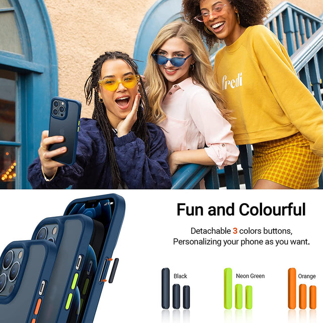 - [Exclusive 3 Colors Responsive Clicky Buttons] Case for iPhone 13 pro unique ergonomic design for independent buttons feel sensitive and much easier to press, with solid feedback and nice tactile feel, specially provide 3 different colors of buttons, DIY as you like, free to show your style