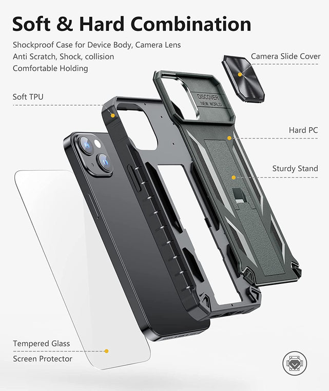 iPhone 13 Rugged Kickstand Slide Shockproof Case