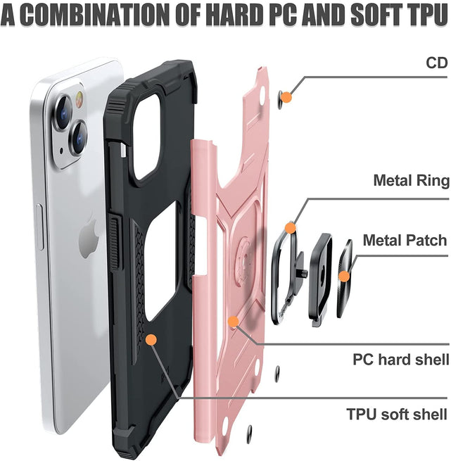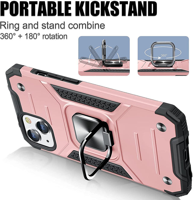 - 【360 Degree Metal Ring Kickstand】-Equipped with premium metal ring kickstand, designed for iPhone 13 case offers multiple adjustable angles (360-degree horizontal and 180-degree vertical). A prefect phone case for magnetic car mount while driving, totally perfect for any occasions!