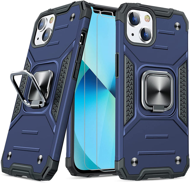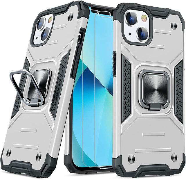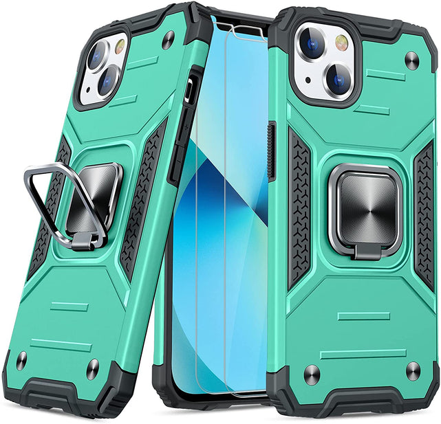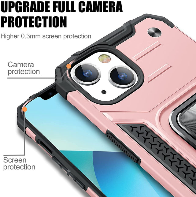 iPhone 13 Slim Soft Bumper Heavy Duty Protection Ring Holder Kickstand Case.