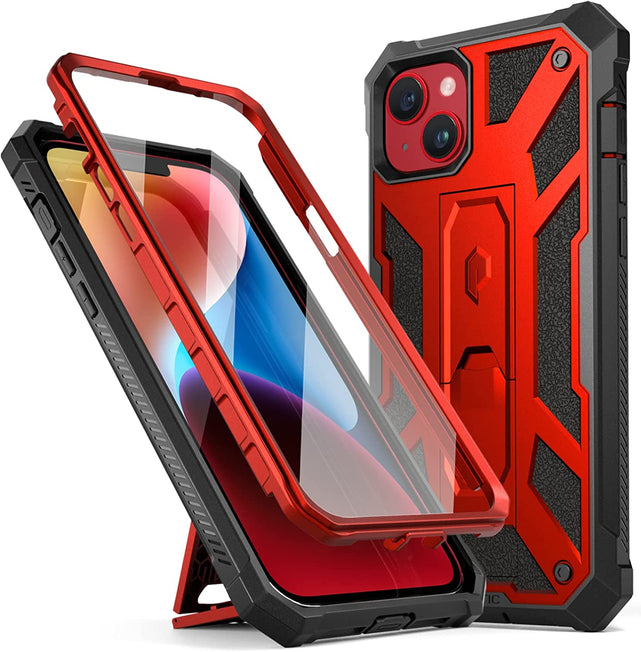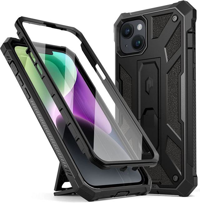 iPhone 14 Built In Screen Protector Full Body Rugged Kickstand Case