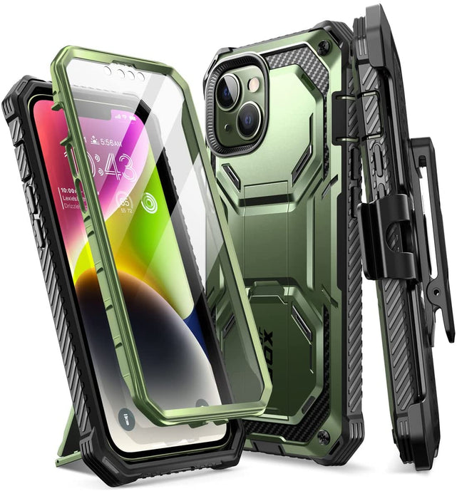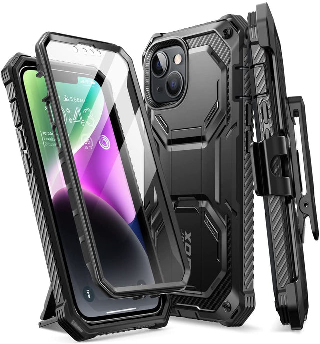 iPhone 14 Full Body Holster Bumper Built in Screen Protector & Kickstand Case