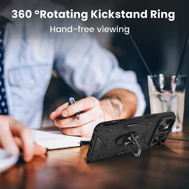 iPhone 14 Kickstand Slide Camera Cover Built in 360° Rotate Ring Case