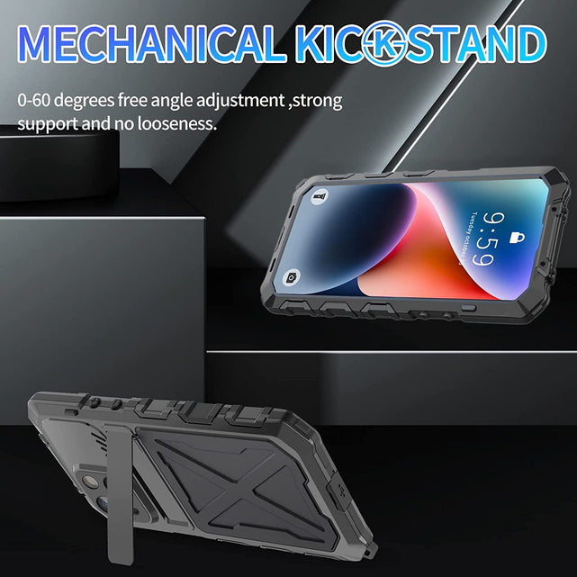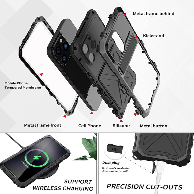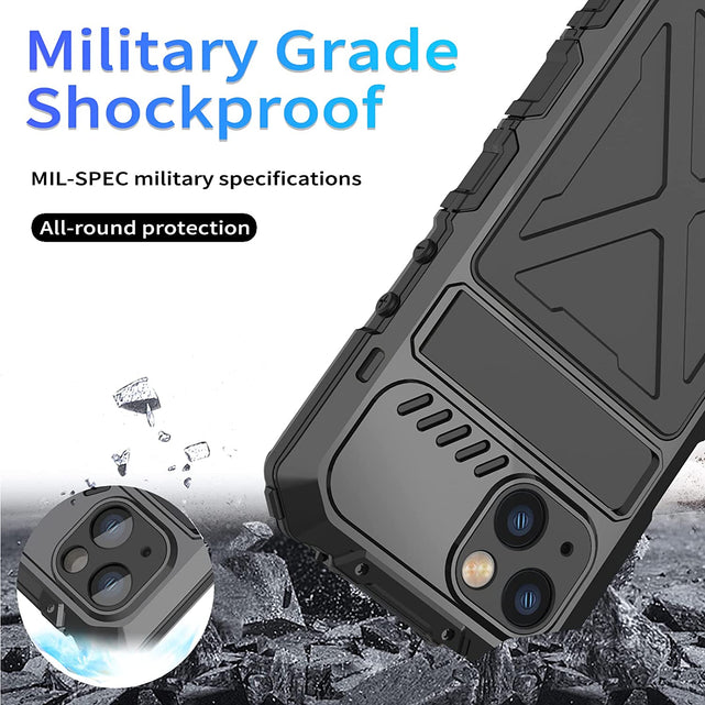 iPhone 14 Metal Kickstand Metal Frame Rugged Silicone Heavy Duty Case