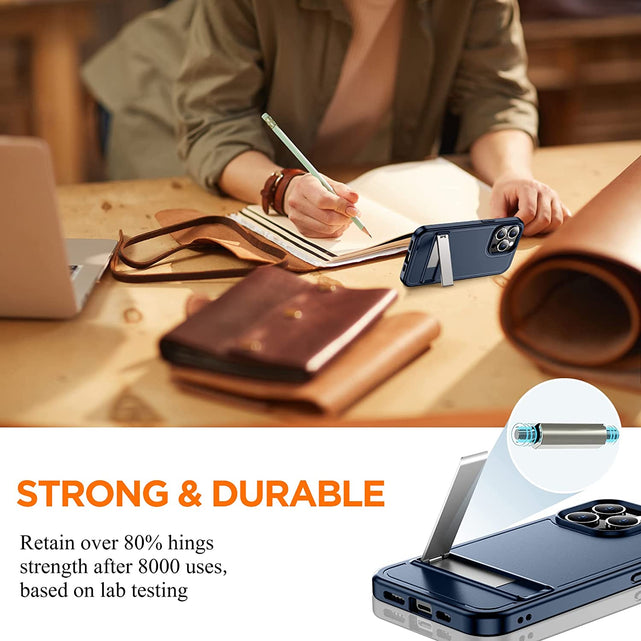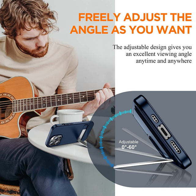 - 【Excellent Hands-Free 3-Way Stand】This iPhone 14 Pro Max case with stand made from lightweight, strong aerospace-grade aluminum that's guaranteed to last over 50,000 uses, never rust. An adjustable stand from 0 to 60° allows you to find a comfortable viewing position to prevent back, neck and wrist pain.