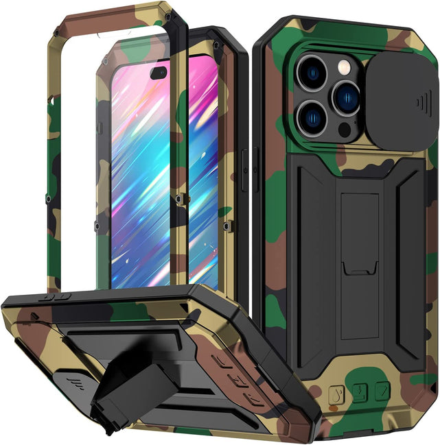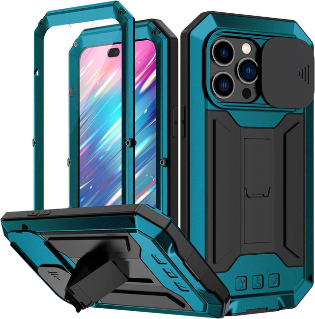 iPhone 14 Pro Metal Camera Cover Military Grade Aluminum Heavy Duty Kickstand Case