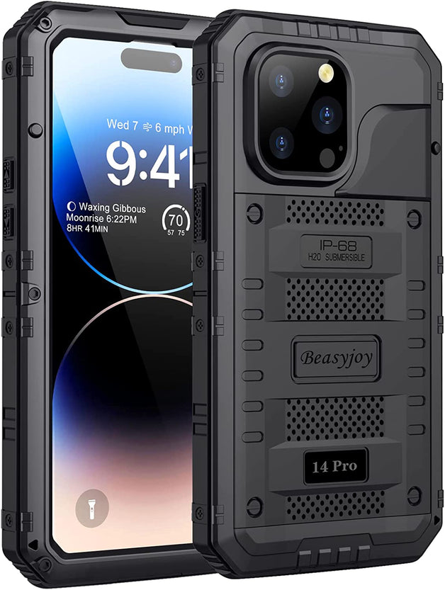 iPhone 14 Pro Metal Sealed Built in Screen Protector Heavy Duty Armor Rugged Case