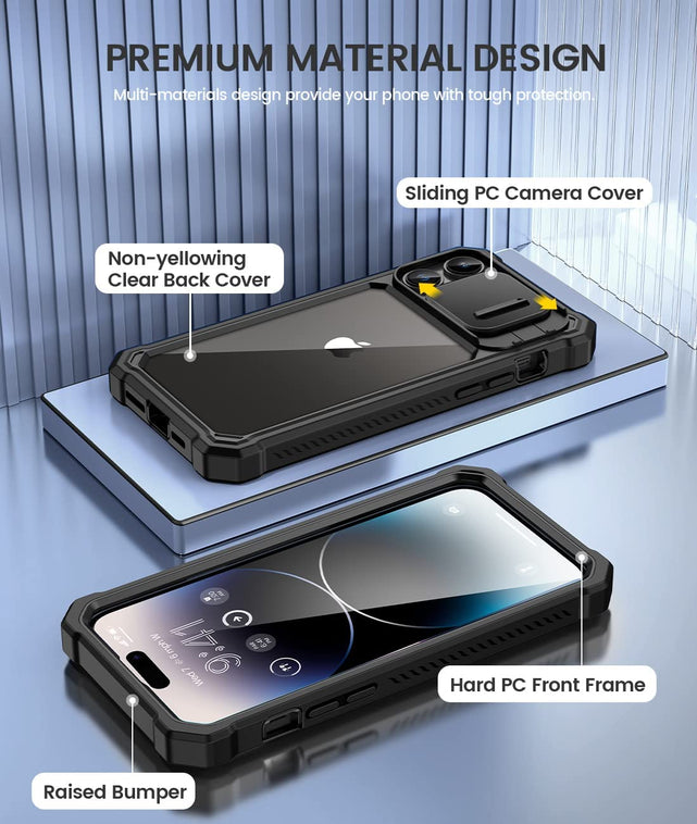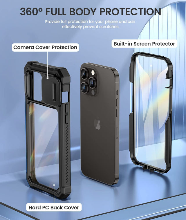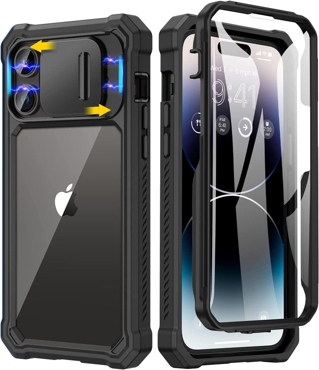 iPhone 14 Pro Slide Camera Cover & Built in Screen Protector Heavy Duty Case