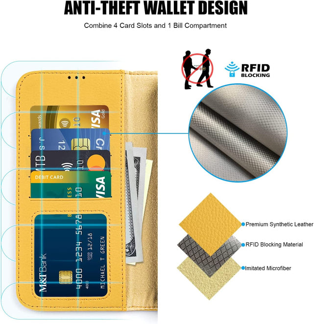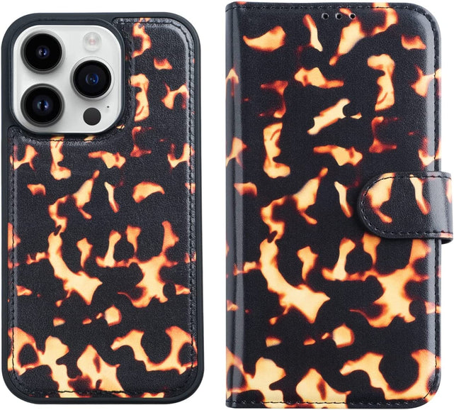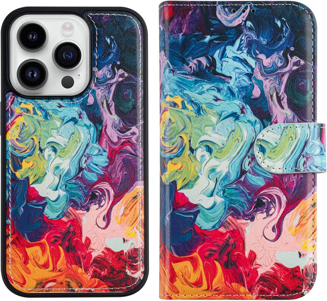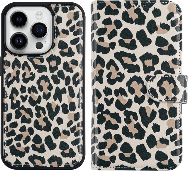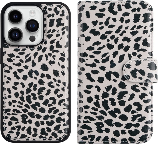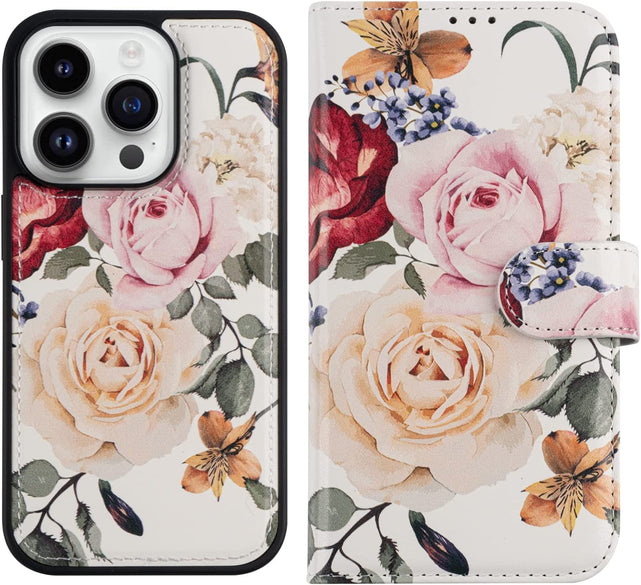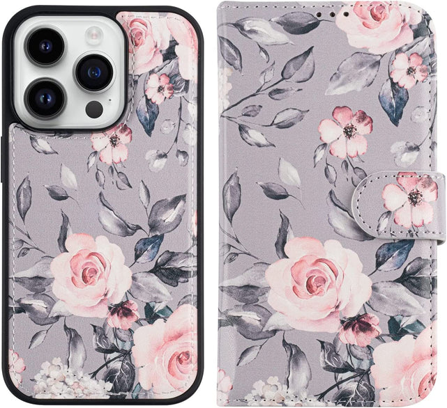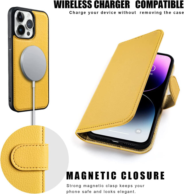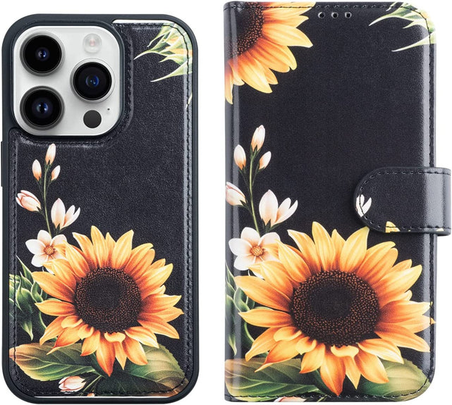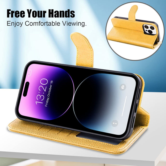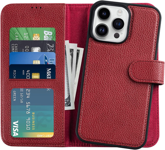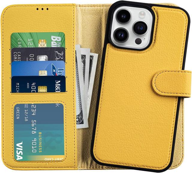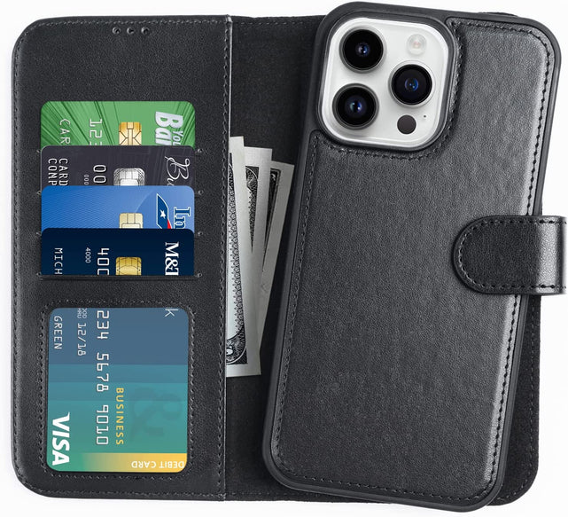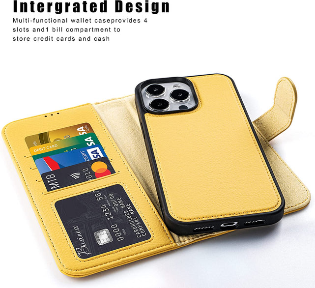 iPhone 14 Pro Wallet Detachable Flip Folio 4 Card Slots Holder Leather Magnetic Kickstand Case