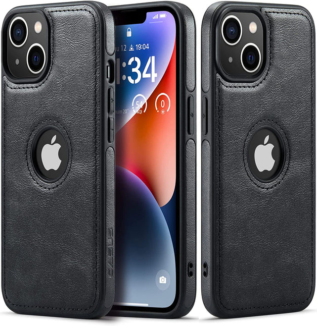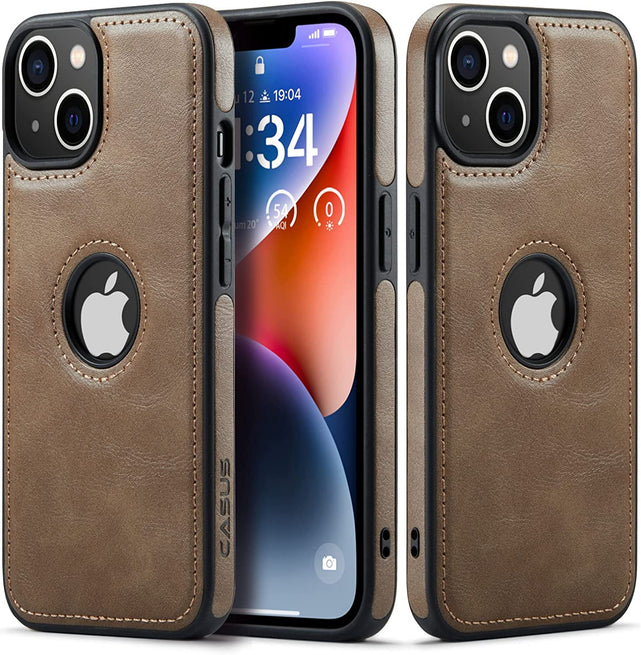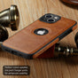 iPhone 14 Slim Premium Vegan Leather Classic Luxury Elegant Logo View Case