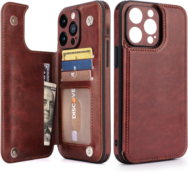 Phone Case for iPhone 15 Pro Max Features: Added EVE guard corners provide stronger protection for your cell phone. Magnetic clasp keeps your cards and cash safe, no worries about slipping out. It is made with premium leather is selected for quality, strength, character, and gain.