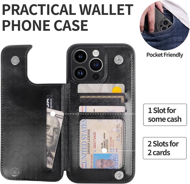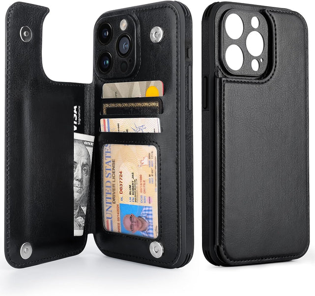 iPhone 15 Pro Max Case Card Holder Flip Cell Phone Cases 6.7" Black