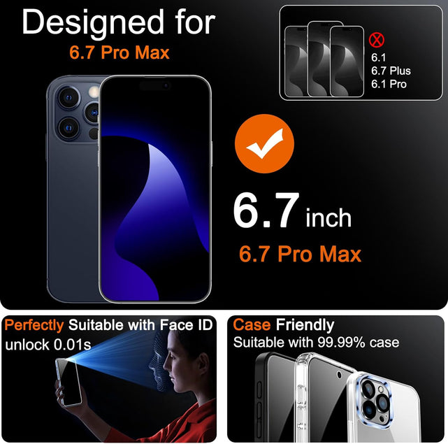 Provides the Strongest Protection: Ordinary privacy tempered films on the market are prone to breakage. Milomdoi's privacy glass made with aerospace-grade glass and fuses nano-ceramics into the glass protector(Certified by SGS), providing 8X stronger protection than normal glass for superior resistance to damage caused by scratches, bumps, and drops in daily use. By investing in this high quality 6.7 inch Pro Max 6.7 inch privacy protector, you can avoid costly screen repairs or replacements!
