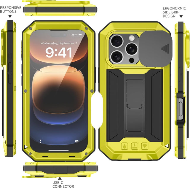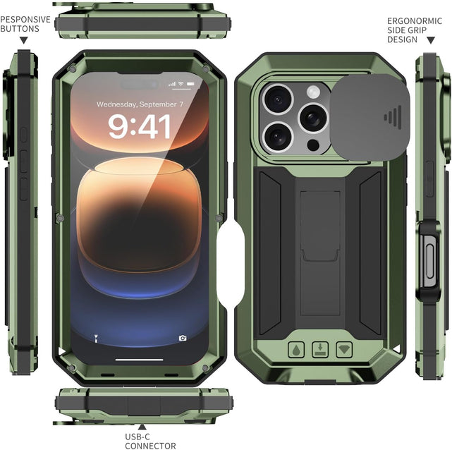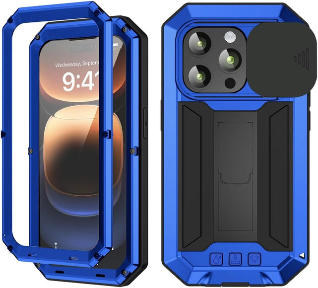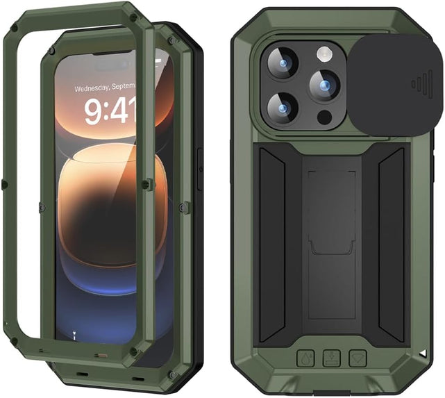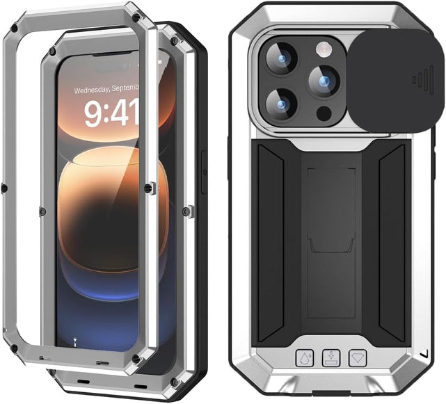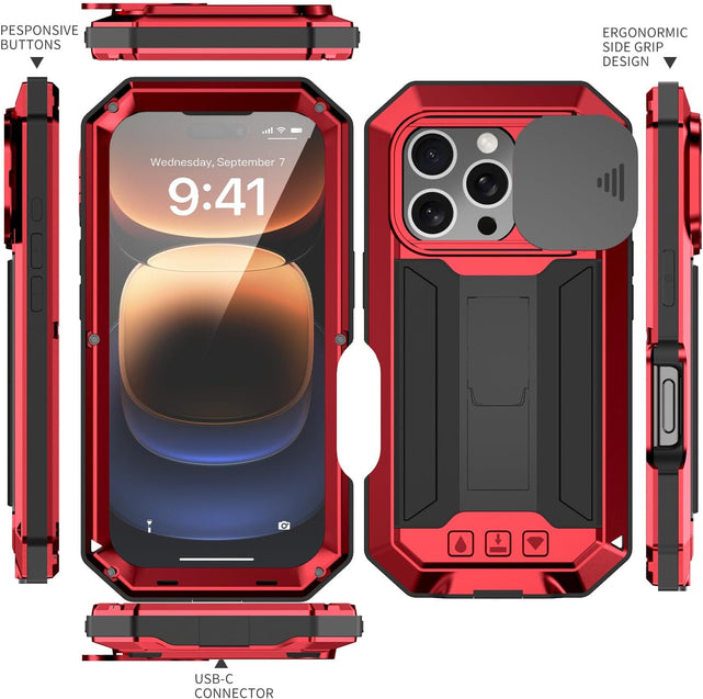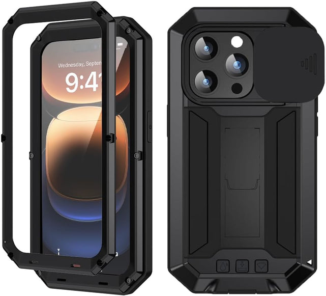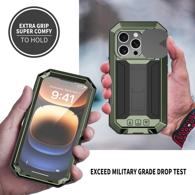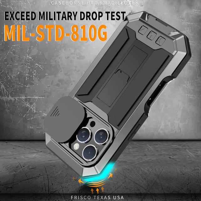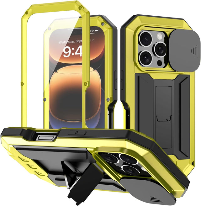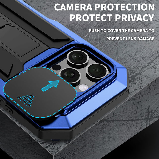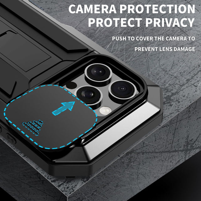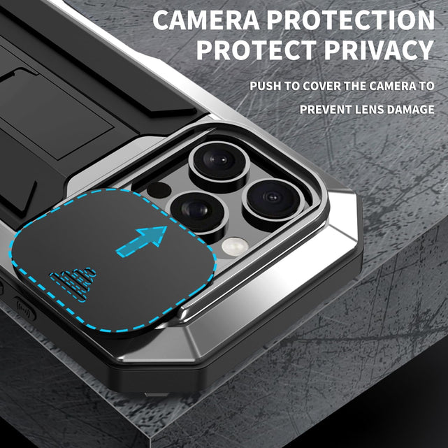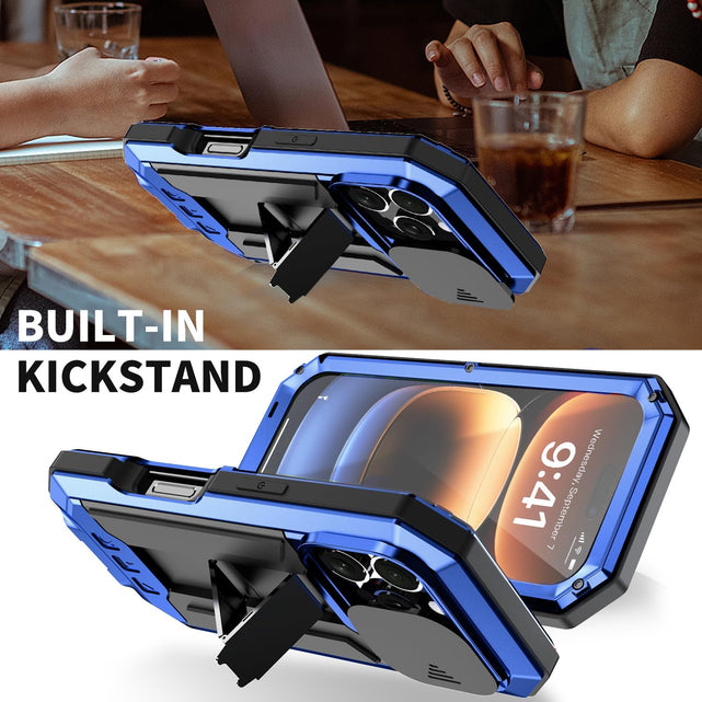 iPhone 16 Rugged Metal Kickstand Camera Slide Case