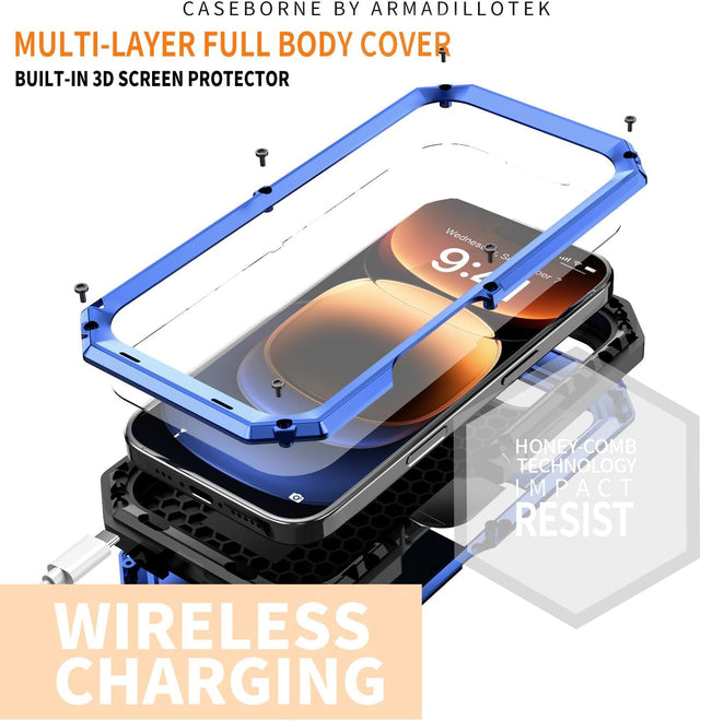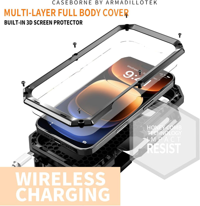 1.【Compatibility & Support】Perfectly compatible With iPhone 16 2024 Model. Fitted metal case features a hard outer shell, soft impact-resistant core, scratch-resistant skid pads, shock-absorbing bumpers, and honeycomb inner lining to keep your phone safe.