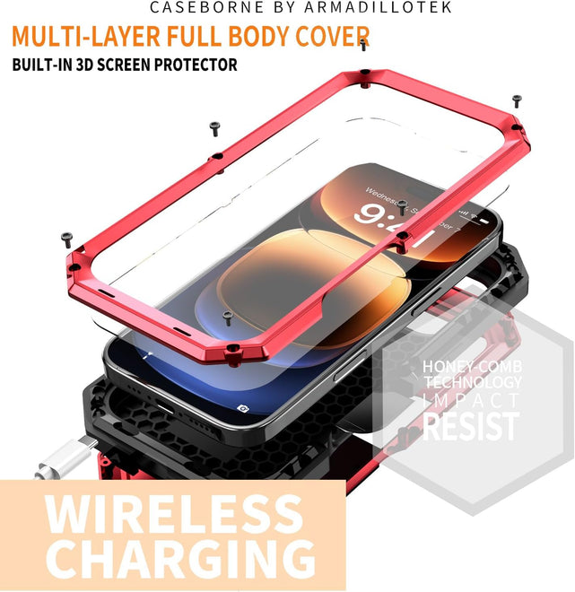 2.【First-class impact absorption】The Powerful case is comprised of protective Aluminium material and a silicone impact truss with screen and camera protect full cover to help prevent impact damage and scratches appearing on your device. Designed to provide ultimate protection as well as being dust and water droplets, the first choice in harsh environments and outdoor work .