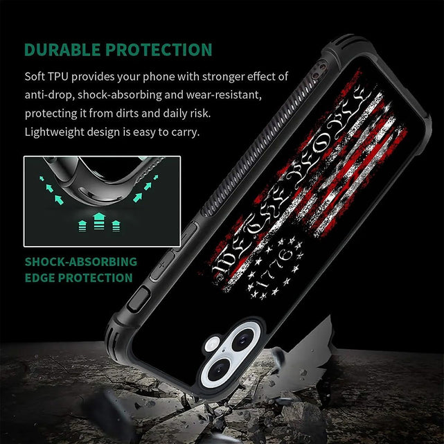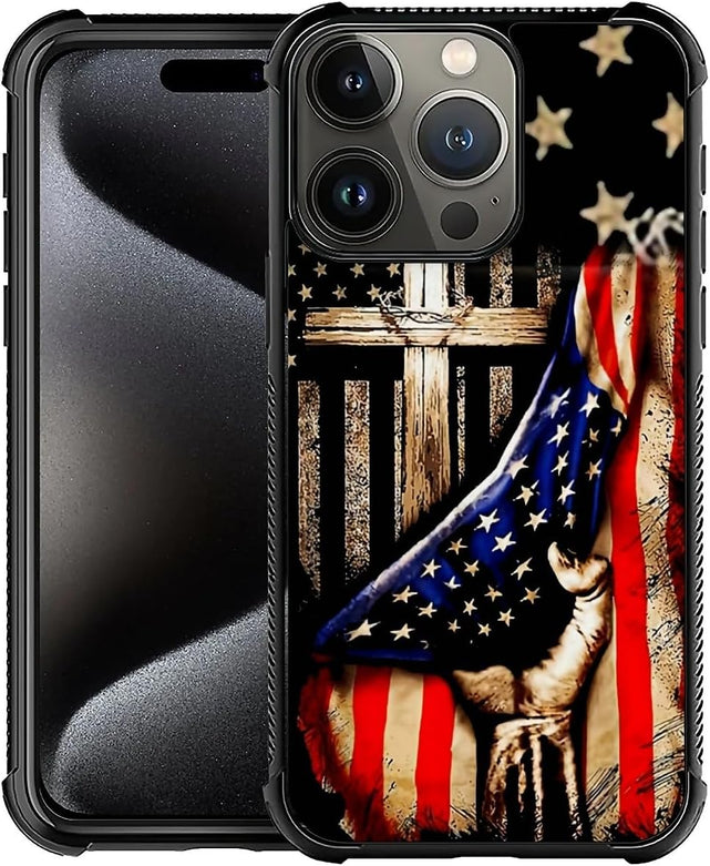iPhone 16 Wooden Cross Power American Flag Pattern Design Case