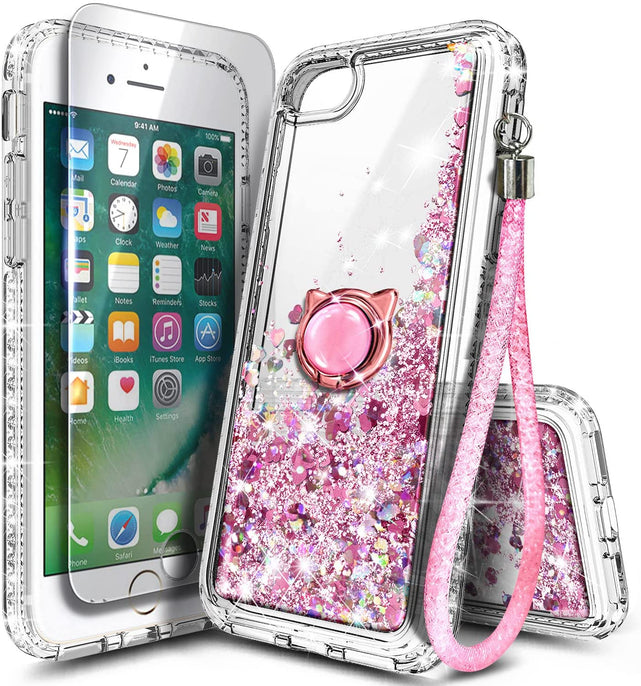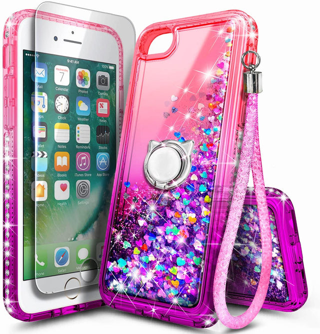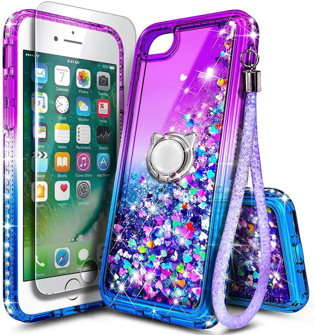 iPhone 7 Holographic Ring Holder Liquid Glitter Quicksand Case