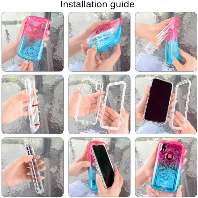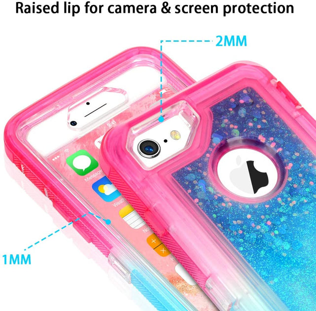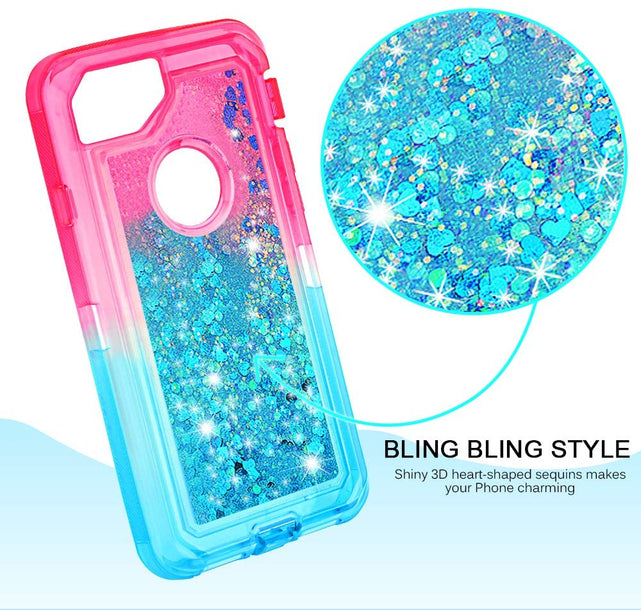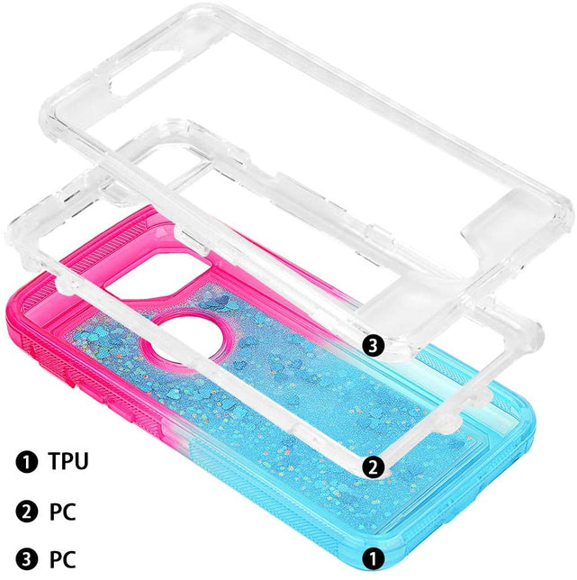 - Sparkle Gradient Design: The Gradient TPU infused with lovely eye-catching heart shape sparkle sequins looks more girly, the liquid is sealed ,HARMLESS and move freely. Please be assured the purchase.