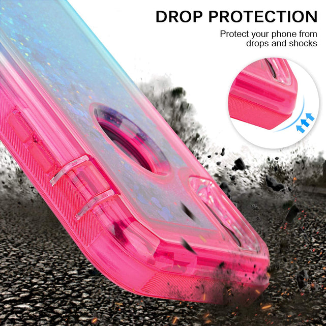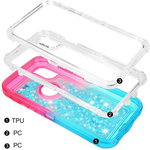 - Sparkle Gradient Design: The Gradient TPU infused with lovely eye-catching heart shape sparkle sequins looks more girly, the liquid is sealed ,HARMLESS and move freely. Please be assured the purchase.